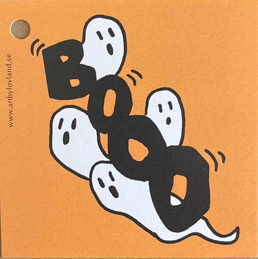 Nu är det snart Halloween och man kan ju tycka mer eller mindre om den högtiden. Men oavsett så erbjuder ju Halloween helgen lite extra ledighet tillfällen att träffa vänner och bekanta! Inte så dumt! Därför har jag gjort ett perfekt litet kort att hänga på ”gå- bort- på- Halloween-middag- med- kompisar” flaskan”! Hur trevligt är det inte att plocka fram ett litet lagom spöklikt kort och hänga på flaskan eller blomman som man tar med sig till festen/kalaset? Väldigt!  Passa på att köpa många för jag lovar att dessa små kort kommer att gå åt!
