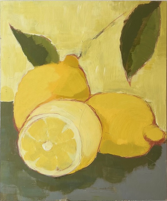 Citroner har alltid varit en favorit frukt att måla av då de har en härlig form och framför allt för att de är gula!! Gult har under många år varit min absoluta favoritfärg. Som den julen då jag var 8 år gammal och fick frågan: Vad önskar du dig i julklapp? Mitt svar var -Det spelar ingen roll…bara det är gult! Min familj gjorde så att min önskan gick i uppfyllelse och jag fick ALLA mina julklappar i gult det året.